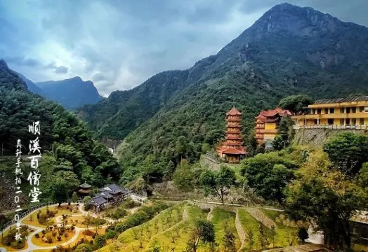 雲祥寺距順溪1.5公里,又名“百客堂”、“百僧堂”。寺分舊寺新寺兩座,相距5O米,共有建築面積5O0平方米。舊寺創建於元代,清康熙時重建,光緒七年(1881)再建。有7間平房,寺內保存摹像題記碑刻多塊,其中有清宣統年間所鐫之青石碑記一塊,記述該寺之興衰歷程。1978年建成之新寺為三間三層木石結構,兩間橫軒全部用石料構成。整個寺院依山取勢,因地制宜,佈局合理,獨具匠心。寺周還有二宜亭、冰廊等,都是小憩避暑佳地。二宜亭取冷暖咸宜之意,方形,建於清光緒年間,亭內有建亭碑記和首事陳少文圖像碑各一方。碑下有一小洞,一米見方,洞口氣温衹有14℃,彷彿如北雁盪之“冰洞”。冰廊在新寺後,有石徑通往。洞高2米餘,寬3米,深20米,彷彿是地下室之長廊,盛暑之時,廊內氣温也衹在17℃左右,故命名為“冰廊”。