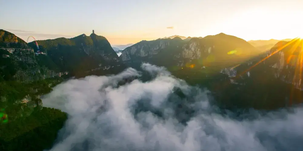 雲陽龍缸國家地質公園是一個深550米的橢圓形天坑,這一深度位居中國第三位,世界第五位,因形狀為一個天然大石缸,還流傳著樵夫與龍女愛情的美妙傳說。雲陽龍缸具有吸引力的主體景觀,是以龍缺天坑為代表的岩溶地貌和以石筍河大峽谷為代表的峽谷景觀。景區內還有2段玻璃棧道,月影棧道和牽手棧道,是很多遊客喜歡游玩的地方。