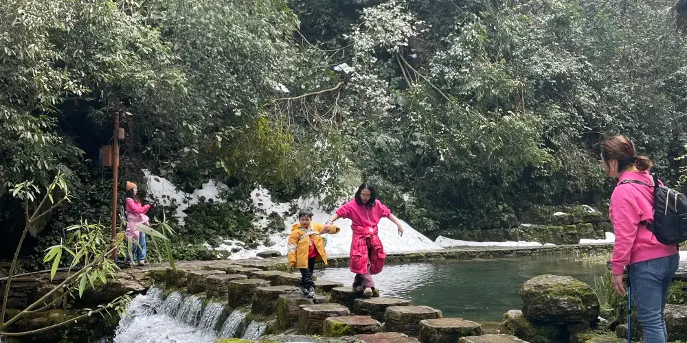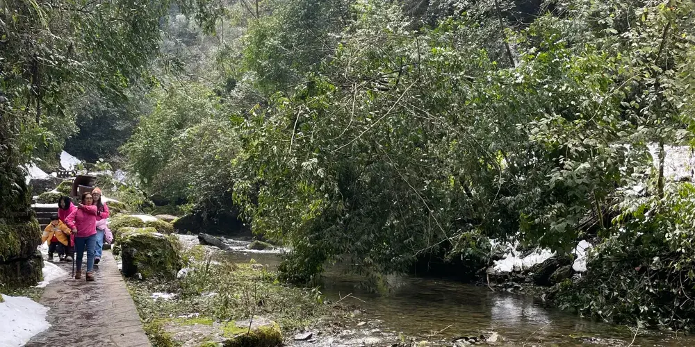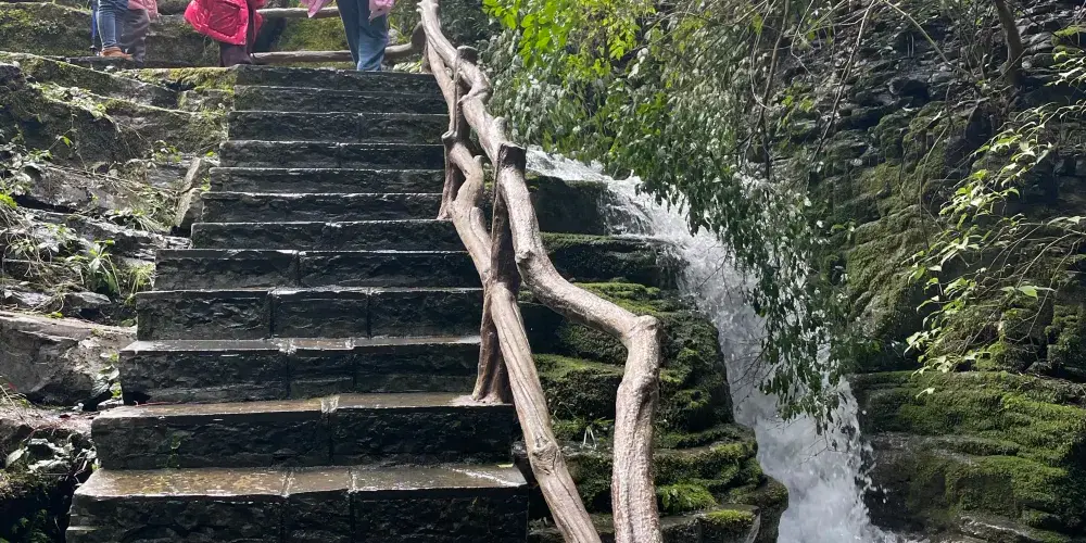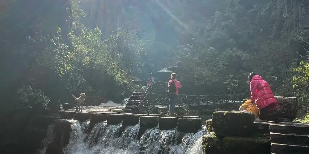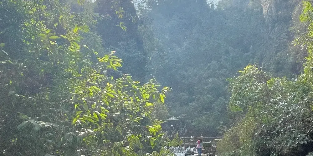 德夯大峽谷地處張家界-鳳凰一線的必經之路上,有別於屬石英砂岩地貌的張家界顯現出的陽剛之氣,屬石灰石岩溶峽谷地貌的德夯大峽谷具有婀娜之秀美。沿著幽長的峽谷,可以登上峽谷中的一個至高點—天問台,看四周環繞的石筍般的山峰,追憶當年屈原含悲問天的情景。爬一爬盤古峰在峰頂能俯瞰德夯苗寨,造訪落差極大的流沙瀑布,不禁心境開闊。