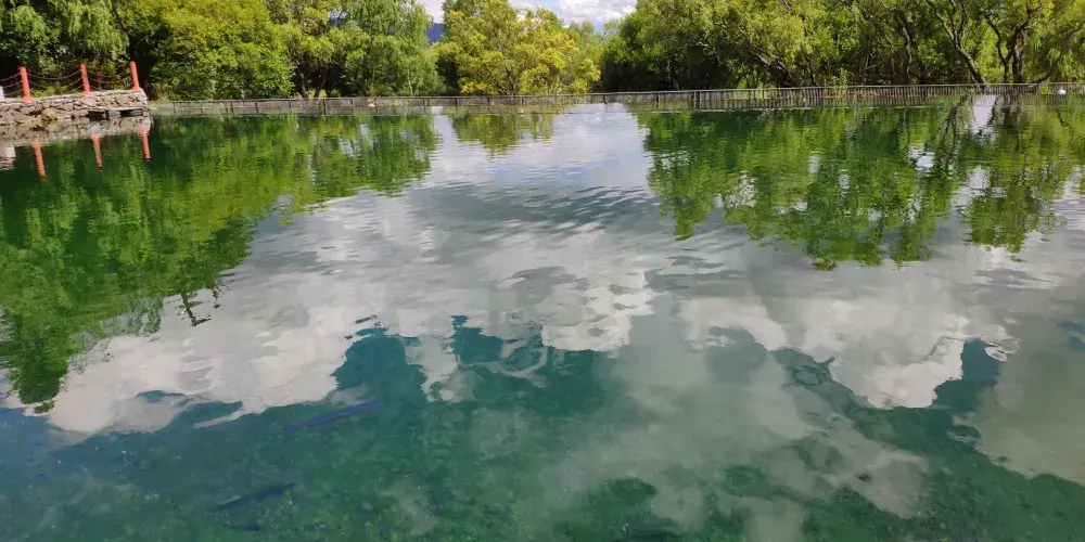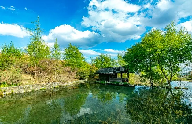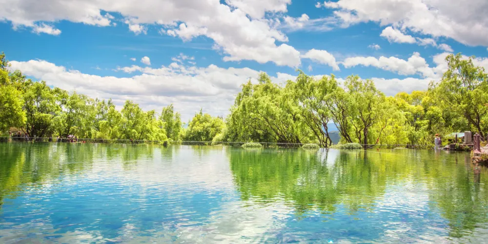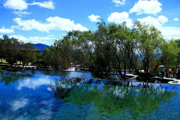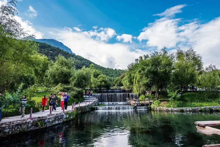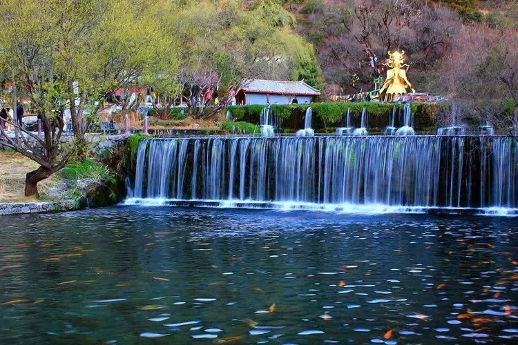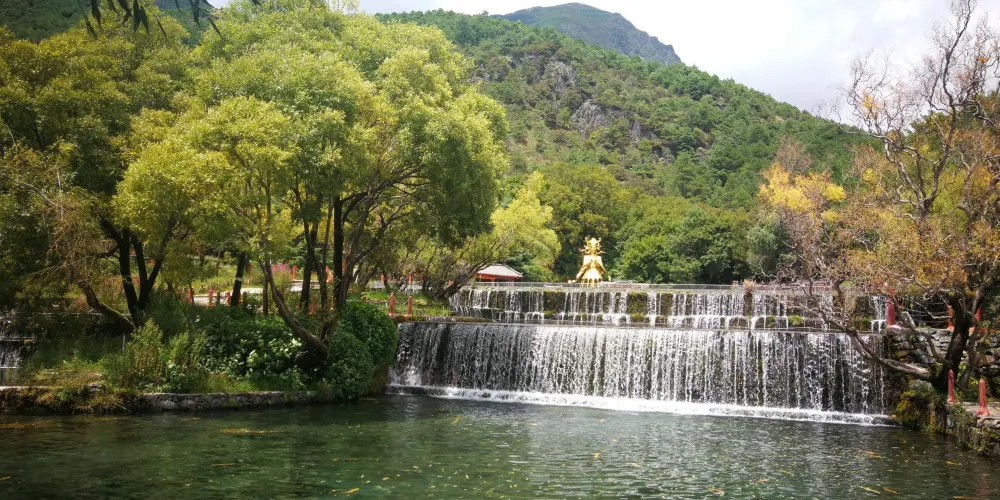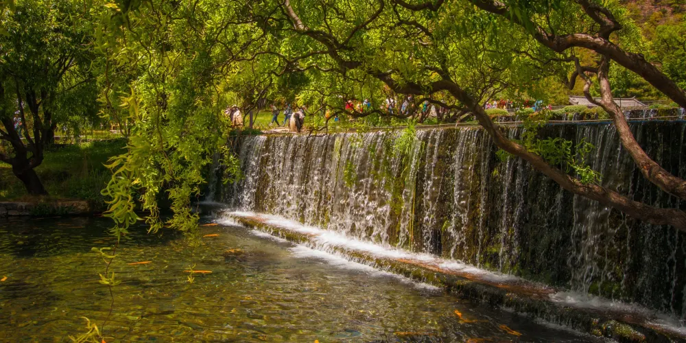 玉水寨位於麗江城區北部,白沙鎮玉龍雪山腳下,山寨風光自然淳樸,尤其是空靈清澈的水景使人讚嘆。這裡還是納西族的東巴教聖地,可以了解關於祭祀、造紙等獨特燦爛的納西族文化。走進玉水寨的景區大門,震撼人的就是神龍三疊水的水景。景區內有一股清泉從兩株老樹下留出,化作層層疊疊、大大小小近十個白珠飛濺的瀑布。傳說神泉的泉眼處是自然神出沒的地方,神把水疊成幾疊,於是造就了這錯落有致的神龍三疊水瀑布群。