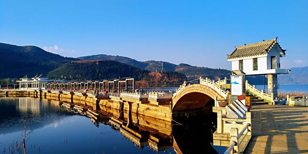 則評價撫仙湖景區位於澄江縣以南5公里處,被視為昆明人的後花園。撫仙湖景區面積很大,沿湖分佈著好幾個小景區,可以隨意去湖邊散步享受自然風光,也可以進入收費的景區內游玩。從湖邊可以走到筆架山,爬上山便能俯瞰撫仙湖和祿充村,一幅自然美景呈現在眼前。