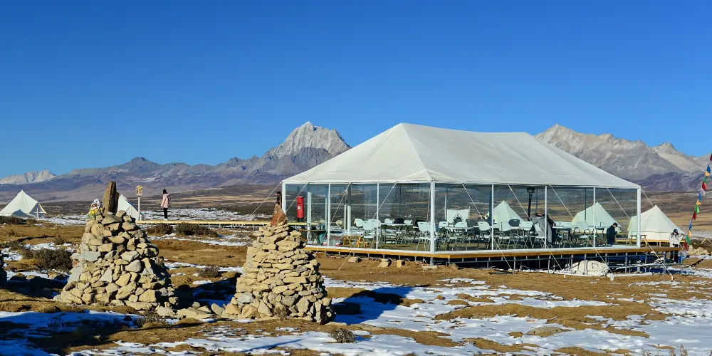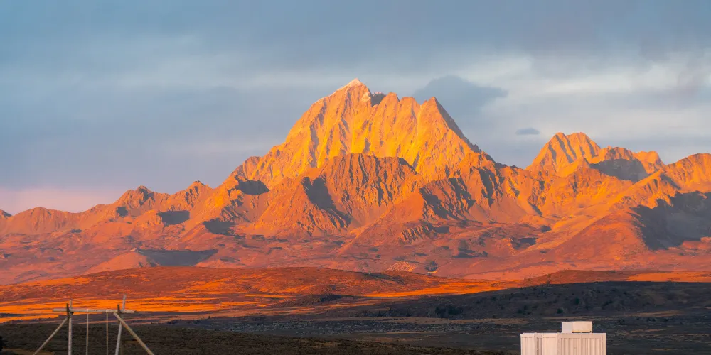 在這裡,可以近距離觀賞雅拉雪山和貢嘎山。站在山頂的觀景平台,視野開闊,向南能眺望貢嘎山的日落金山,彩霞滿天,天地俱染。北面能清楚欣賞雅拉雪山,與貢嘎山遙遙相望,陽光照耀下,天空的藍與雪山的白,融為一體,彷彿觸手可及。在這裡,可以和星空近距離接觸,一覽浩瀚銀河,看流星不時劃過夜空,星移斗轉,如果有幸看到銀河拱橋,更將是不虛此行。