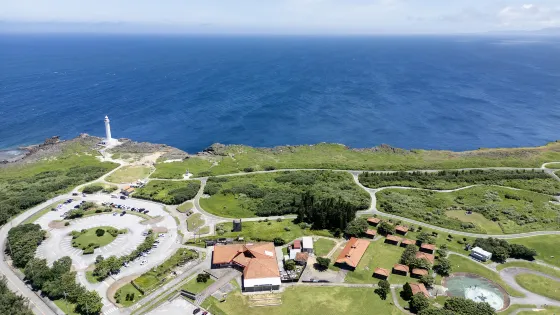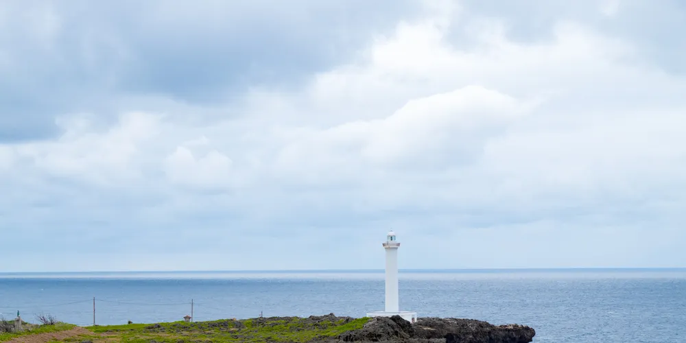 殘波岬燈塔位於沖繩縣沖繩島中之讀穀村殘波岬突端,為白土粉大型燈塔。登上99級樓梯可以到達燈塔高處。