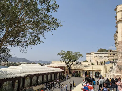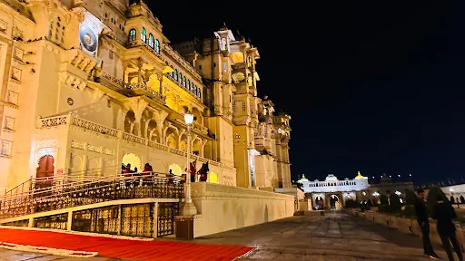 這座雄偉的城市宮殿上面築有陽台、瞭望台和炮台,它是拉賈斯坦最大的宮殿,正面的宮牆有244米長,30.4米高。這座宮殿是由城市的建立者——王公烏代·辛格二世開始建造的,後來經過許多位王公的不斷擴建,這裡已經變成一個建築物的聚集區(包括11座獨立的小型宮殿),但是它仍然令人驚奇地保持著設計的一致性。從宮殿上層的天台上可以瞭望湖面和整座城市,景色很棒。