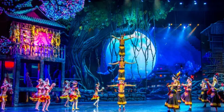 【演出地點:魅力湘西大劇院】魅力湘西大劇院坐落在風景秀美的武陵源區入口處,毗鄰專家村賓館(暨湖南省人民接待處),距離市區僅33公里,地理位置優越。劇院整體是典型的湘西風格建築,處處有着濃厚的湘西民族特色,是當地非常鮮明的地標。得天獨厚的武陵源自然景觀,配上精彩紛呈的文化民俗演出,實為不能錯過的“魅力湘西”。