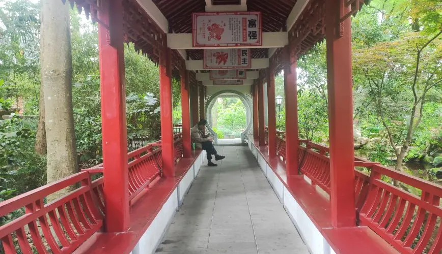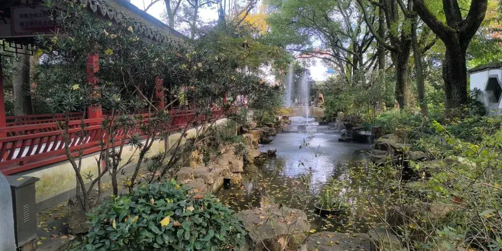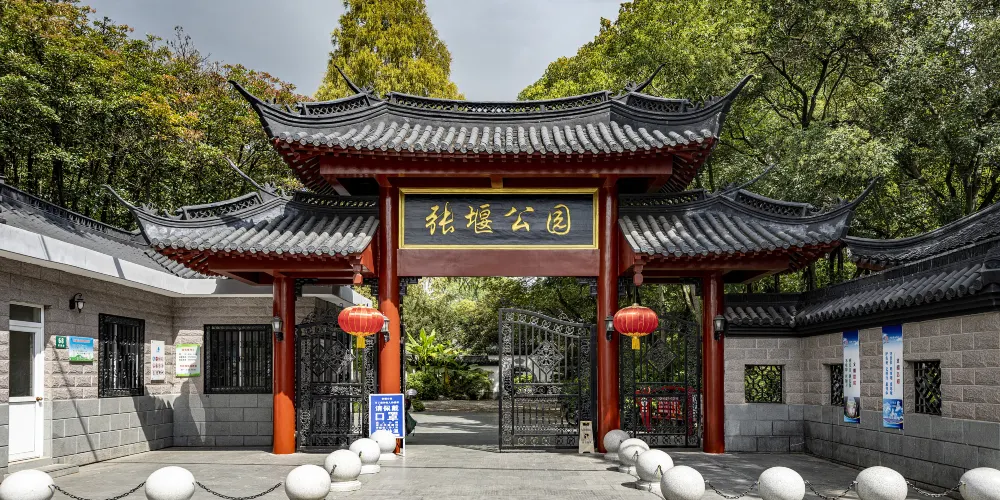 張堰公園坐落在上海市金山區張堰鎮中部,面積為41畝,在張堰老街靠裏一點,接近那裡的市河。公園整體的佈局顯得林木參天,徑亭相通,幽幽清清,雖然有局部細節上小筆觸的遺憾,但還是能追尋到一點古意的。