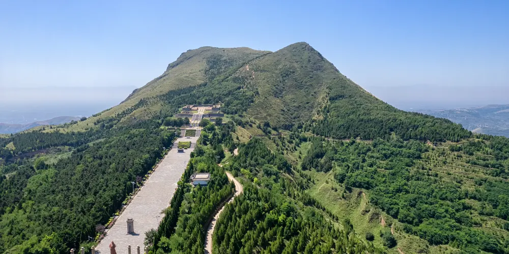 昭陵是唐太宗李世民的陵墓,位於咸陽禮泉縣城東北的九嵕山上,昭陵是陝西關中“唐十八陵”中規模非常大的一座,景區呈一字形佈置,中間部分為主路,兩側設置有唐朝將臣的牌位。進入大門後一直到裡面地勢呈上升趨勢。主路共設置了四段台階,每處台階有一處建築遺址,整個景區具有較高的歷史意義和歷史價值。