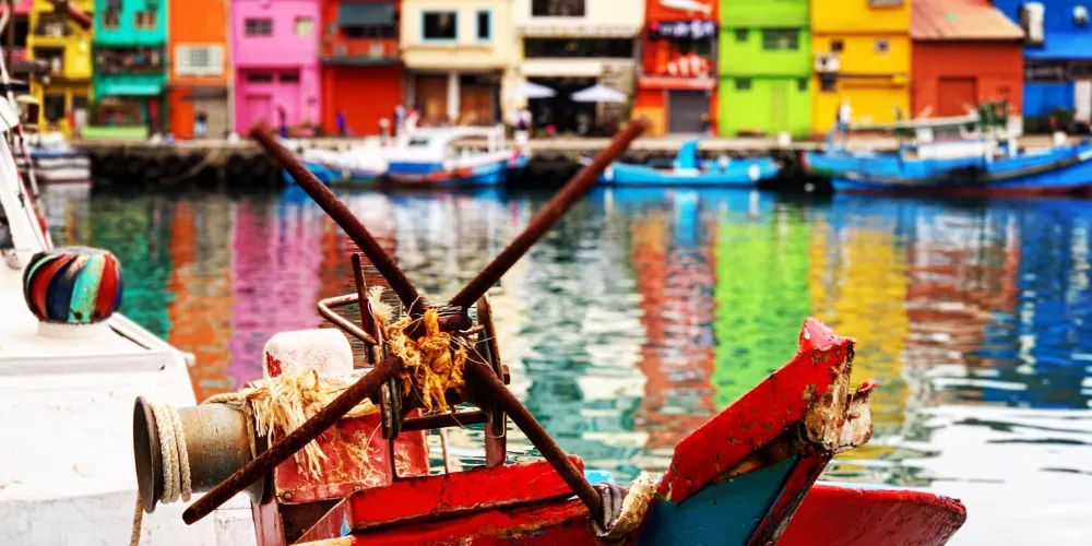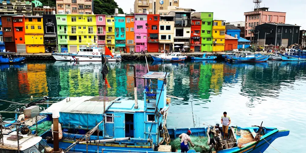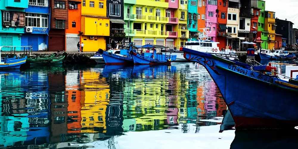 九份豎崎路是九份地區的縱向道路,全程皆由石階所築成,漫步在豎崎路上還可遠眺山城聚落,許多具有特色的茶藝館及昇平戲院也為在這條路上,左右兩旁多是紅磚及木造建築,帶出四、五十年代的懷舊風情,夜晚時分街道上懸掛著的紅色燈籠一一亮起,更瀰漫著一股純樸靜謐的氣息,有如是一條回到過去的時光隧道。
