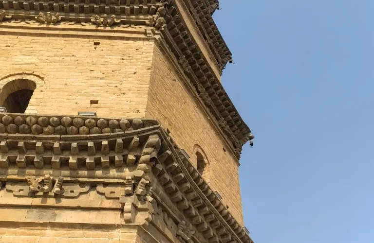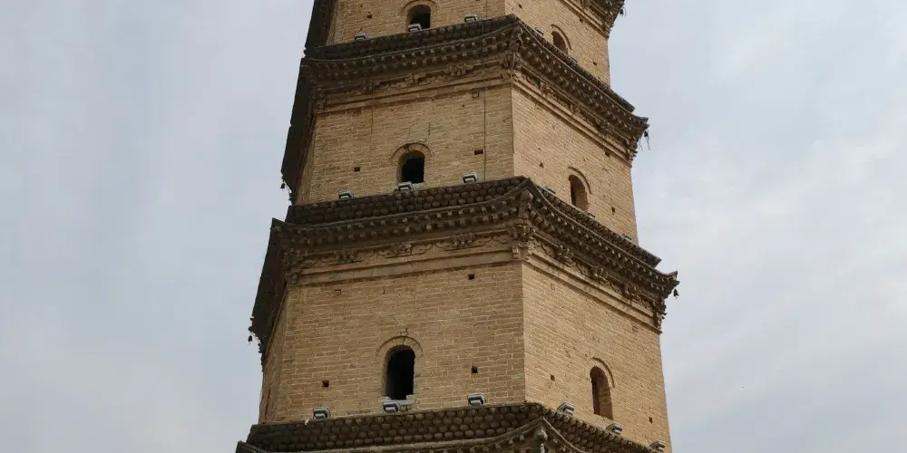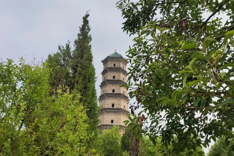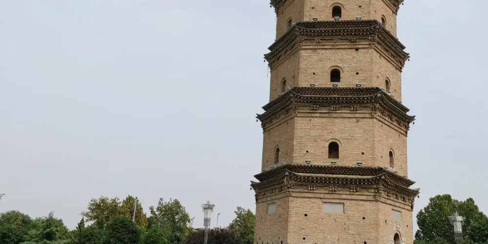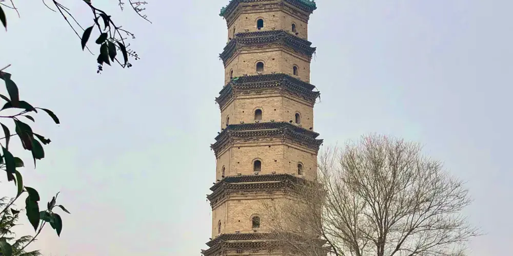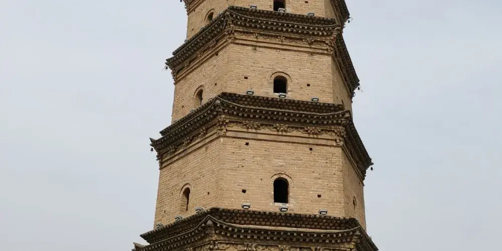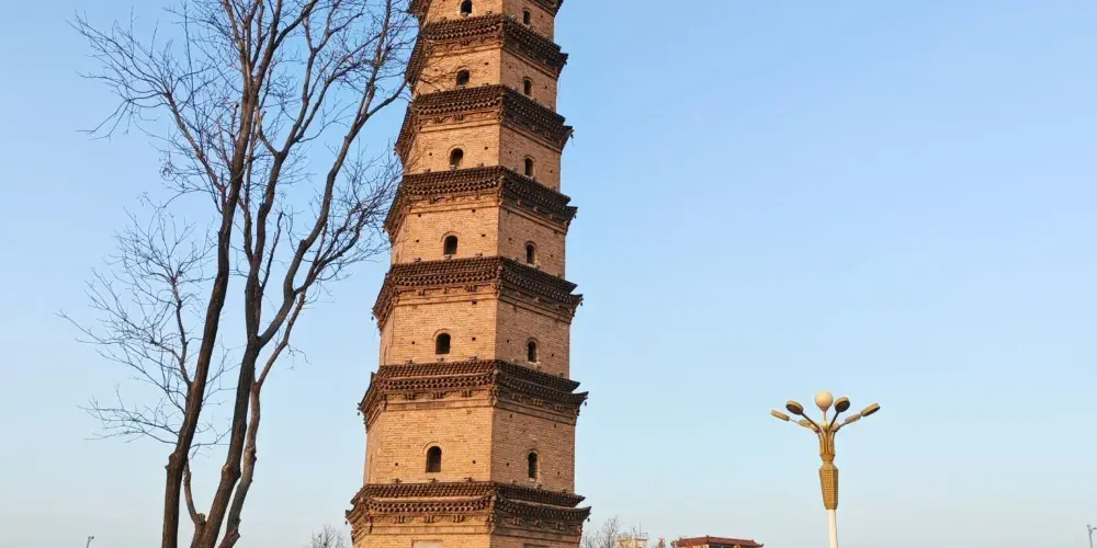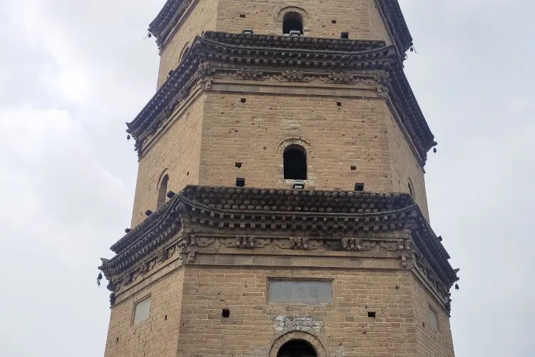 鎮國塔又叫靈應塔,始建於明萬曆十三年(公元1585年),是一座七層六角樓閣式磚塔,每層塔檐下都有磚雕裝飾,圖案精美,塔頂內部砌有八卦圖。