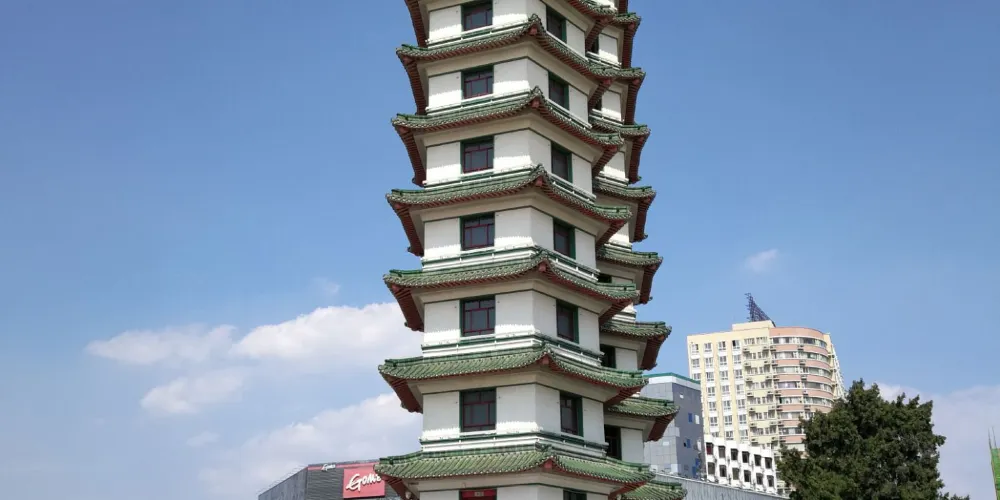 “二七”紀念塔位於現在的二七廣場上,是為紀念1923年“二七”大罷工的英雄們而建造的。 “二七”紀念塔為雙身並聯式塔身,由鋼筋、混凝土構成。塔內一邊為旋梯,一邊為展室,可登至塔頂,遠眺市容。入夜後,多種彩燈內透外照,使雙塔更加絢麗多彩。 "