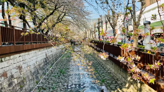 鎮海觀光名地而被人們所熟知的餘佐川是MBC電視劇《羅曼史》中兩個主演(冠佑和彩媛)參觀完軍港祭以後在橋上見面的地方,電視一經播出這裡就被稱為“浪漫之橋”,迅速地成為人們接踵而至的觀光名地。每年4月櫻花盛放的時候,櫻花遍布整個城市中心,在鎮海這裡也是比較好的觀賞櫻花的地方,並且處處能看到的來看櫻花的遊客在櫻花樹下郊遊的場景也成為這裡一道亮麗的風景線。
