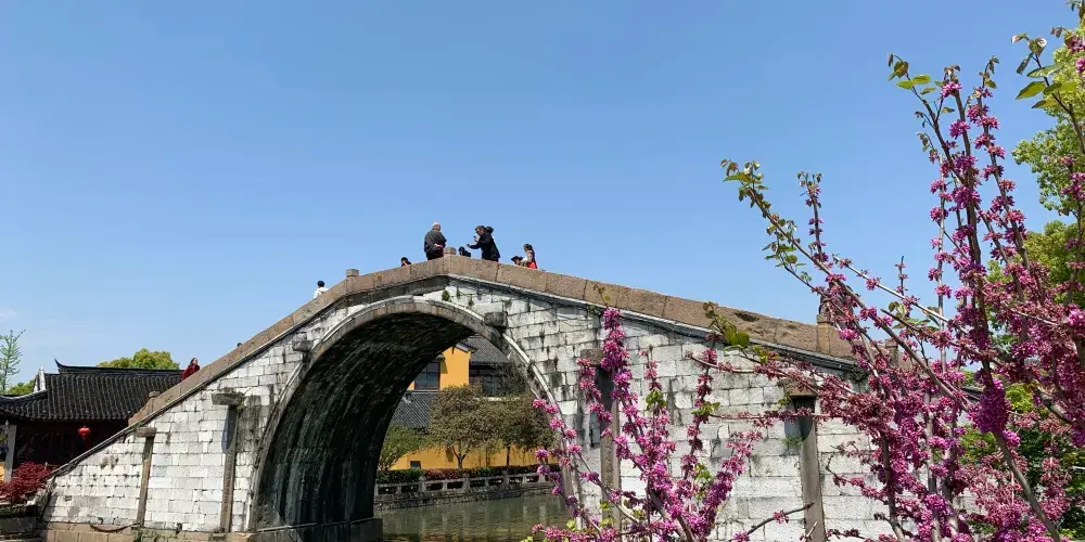 則評價百間樓,相傳是明代禮部尚書董份給他家的奴僕們建造的住所,開始建造時約有樓房百間,故名”百間樓”。房舍集中的是河東岸的蓮花橋到長橋,河兩岸密佈著的房屋,白牆、青瓦、沿廊、河埠、花牆、捲門、廊簷,每家的房屋都一樣,屋外運河水流淌,船隻去了又回,是江南水鄉不變的運河風光。