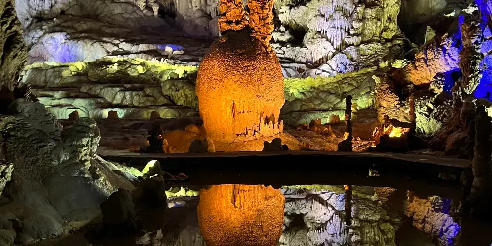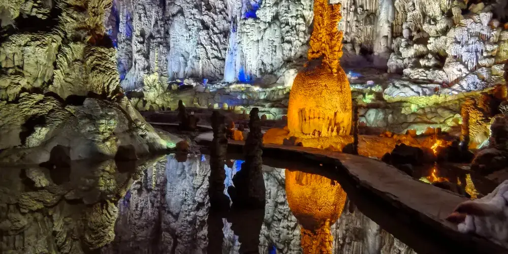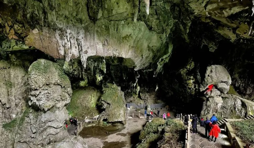 織金洞國家重點風景名勝區-一線三槽恐龍湖景區是一個以獨特地質景觀和自然生態環境著稱的旅遊目的地。景區內的恐龍湖因其形狀酷似恐龍而得名,湖水清澈,四周環繞著鬱鬱蔥蔥的植被,形成了一個寧靜而美麗的自然環境。湖泊周圍的岩石地形展示了地質演變的奇觀,吸引地質愛好者和攝影師前來探索。