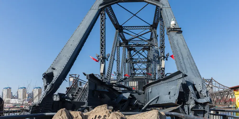 丹東中朝邊界位於丹東市區東北方向約12公里的鴨綠江畔,虎山長城景區內,是遊客遠眺朝鮮的打卡地。