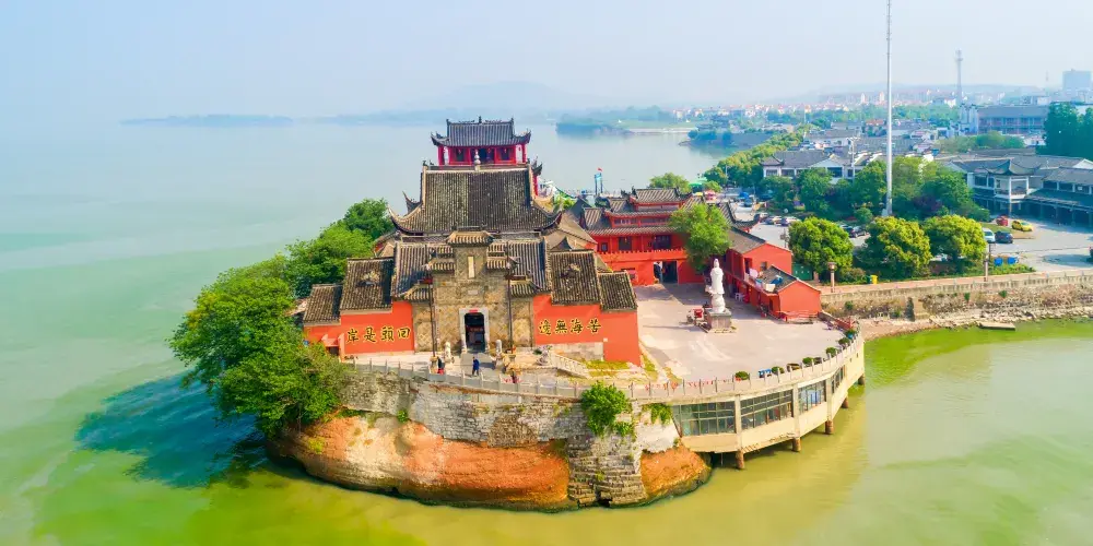 中廟位於巢湖北岸的中廟鎮境內,與湖中心的姥山島隔水相望。這座廟其實風景真的很不錯,小廟建在湖邊,兩面臨水,山水之色可以盡收眼底。站在廟樓三層,迎著湖面吹來的陣陣微風,瞭望遠處樸素的船家,慢慢體味生活的樂趣。