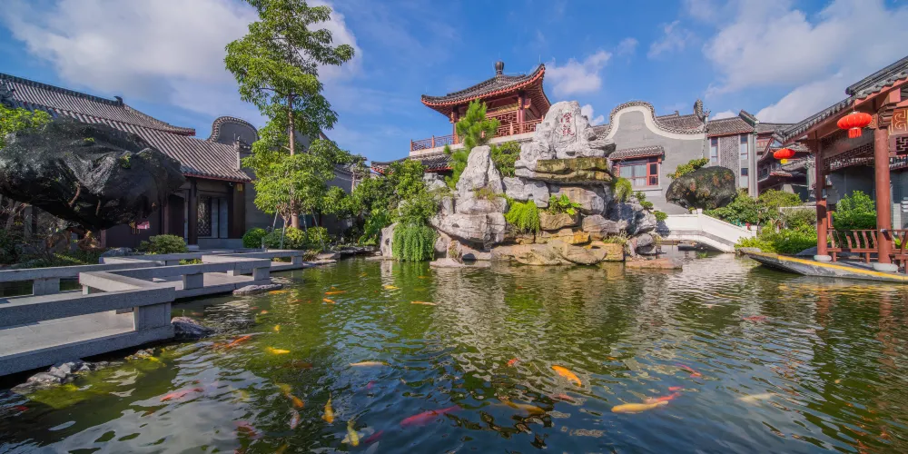 中山詹園又名中山大宅門,座落在中山市西南郊,是目前嶺南地區首大古典私家庭園。詹園建築以蘇杭園林為基調,結合嶺南水鄉的佈局脈絡,使湖洲山、北溪河等自然風光與詹園建築構成一體,形成天人合一的建築風格。今日的詹園已逐漸形成“一山、一水、一庭園;亦詩、亦畫、亦休閒”的珍貴藝術景觀。