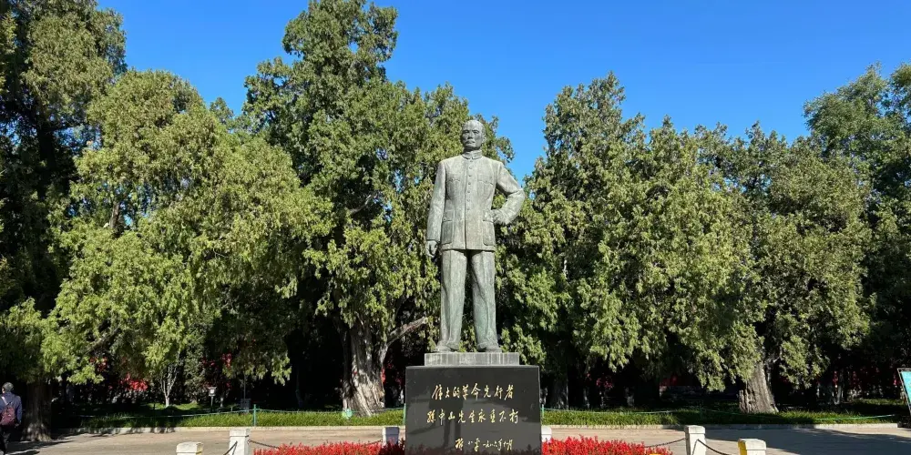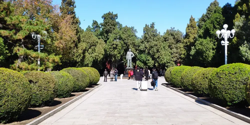天安門廣場位於北京中心,南北長880米,東西寬500米,面積達44萬平方米,可容納100萬人舉行盛大集會。廣場內沿北京中軸線由北向南依次矗立著國旗杆、人民英雄紀念碑、毛主席紀念堂和正陽門城樓。
