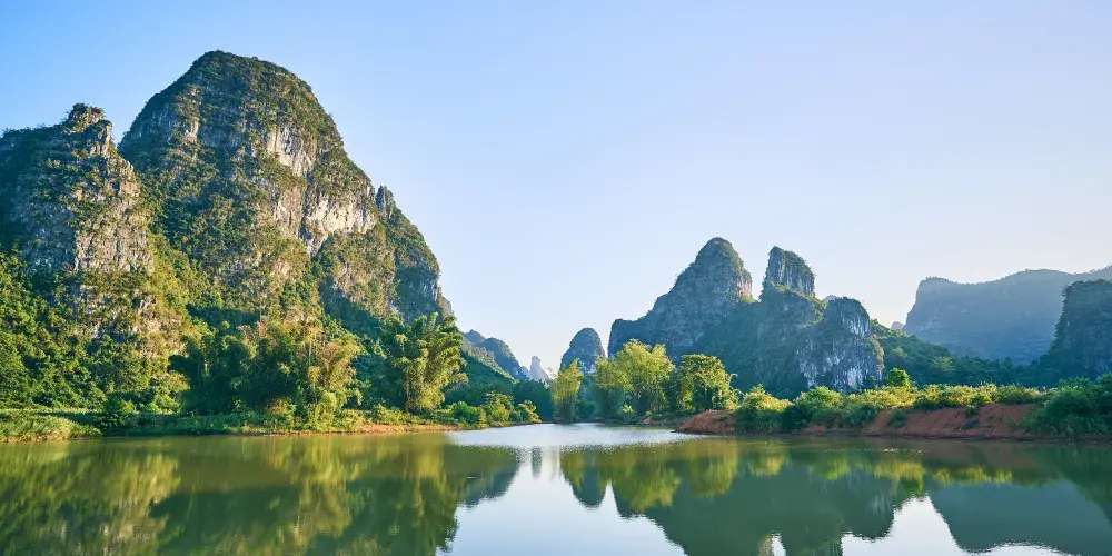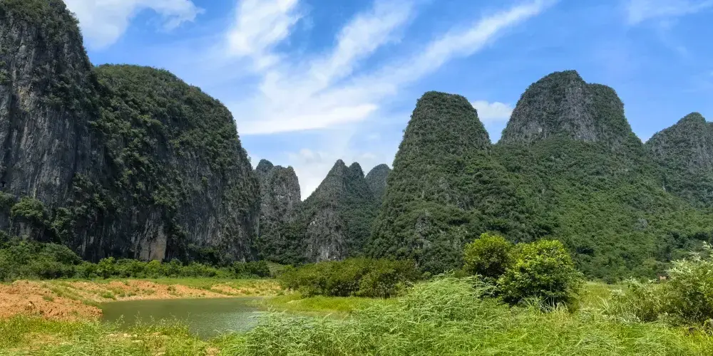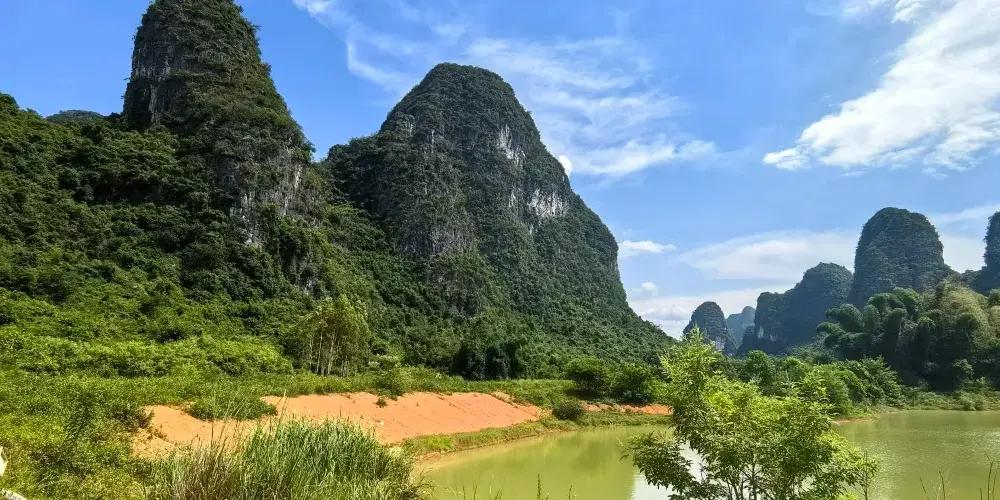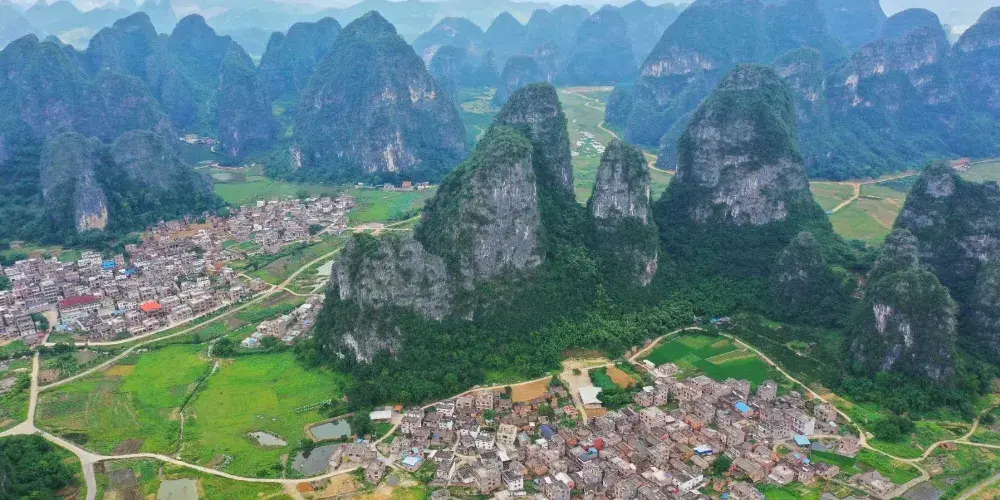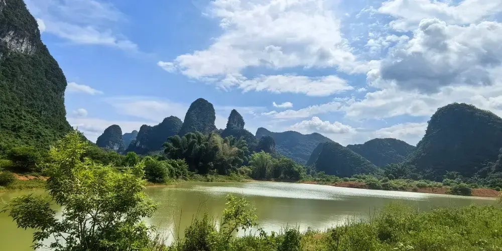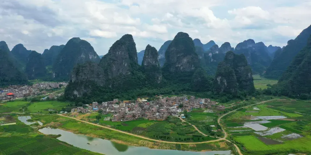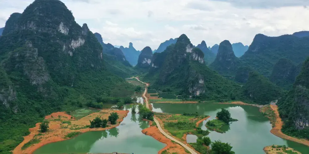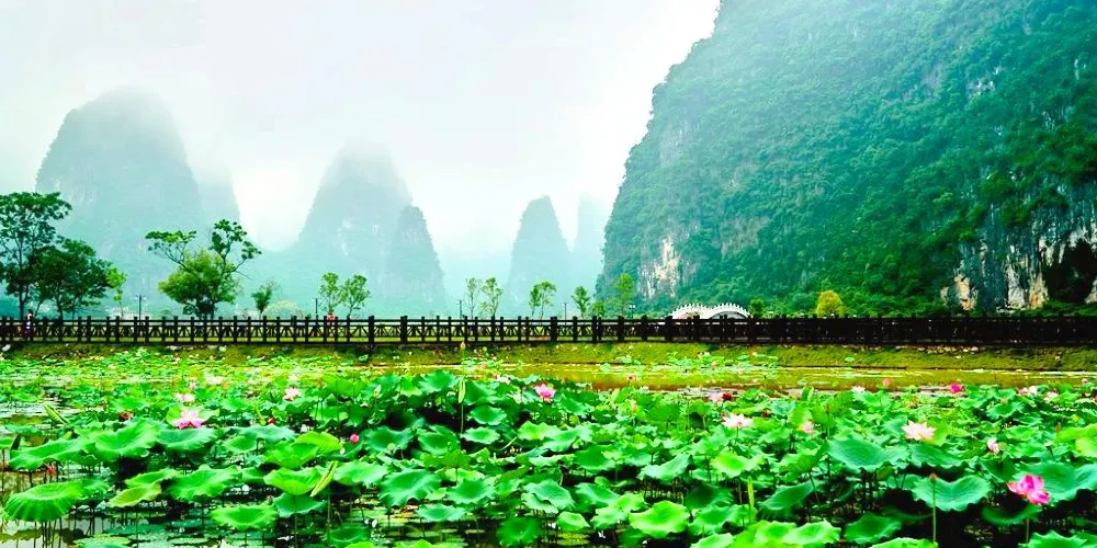 百里水墨畫廊位於賀州市鐘山縣境內,屬喀斯特峯林地貌景觀,擁有恬靜迷人的山水、荷塘、田園風光。山青水秀,荷塘翠綠。清風徐來,荷花搖曳,自然純凈,繪製出一幅讓人沉醉的百里水墨畫卷。
