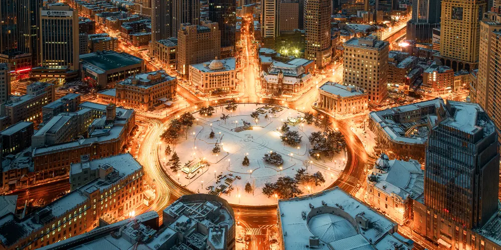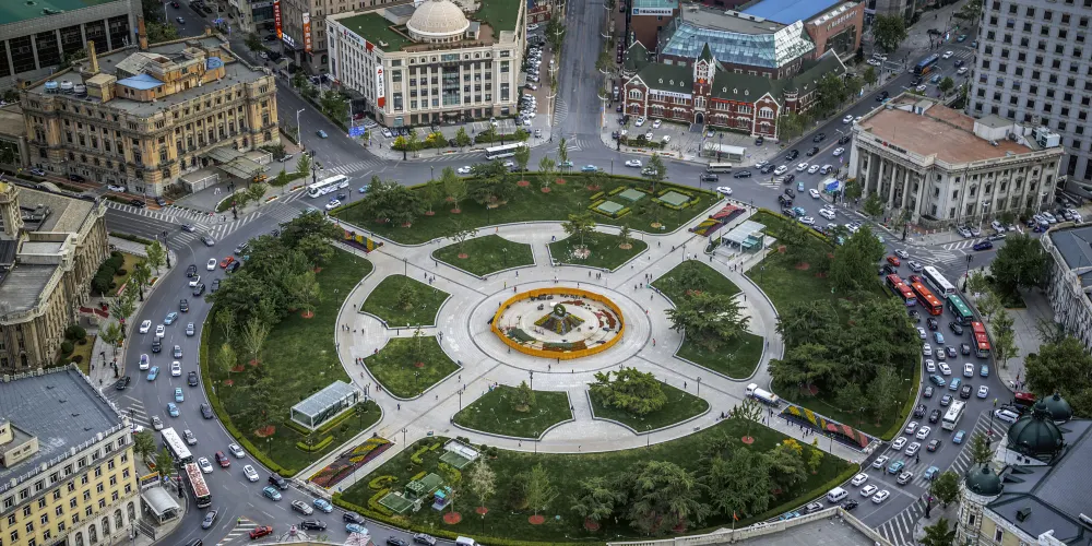 中山廣場位於大連火車站東側,是大連有名的廣場之一。這座圓形的廣場是十條馬路的交匯處,廣場周圍坐落著許多建於一百年前的歐式建築,漫步在此可感受到異域風情,廣場本身則是一片開放式綠地和休閒步道,平時是市民的休閒場所。