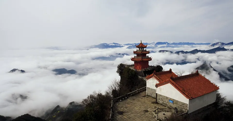 湖北中武當天柱山風景區位於湖北宜昌的長陽土家族自治縣縣城西三十公里,地處清江北岸國家森林公園,與國家AAAAA級景區清江畫廊風景區毗鄰,海拔1445米。其風景優美,集秀、奇、險、峻於一身,系道教三十六洞天,七十二福地之一。風景區內山勢巍峨,有健筆凌雲之勢,遠眺孤峯峙立,拔地聳天,近觀三峯爭俏,雙橋飛虹;望仙台、神蛙石、陰陽井、神泉。大自然鬼斧神工,混然天成;天柱山極頂,置身雲端,俯瞰千障,羣山拱抱,雲蒸霧繞,千山萬壑,盡收眼底;古建築羣雄偉壯觀,宮殿雄踞,雲梯高懸,流檐飛閣,古色爛然;自唐始建宮觀,距今有1300多年歷史,千百年來中武當天柱山道觀晨鐘暮鼓,終日香煙繚繞,四方道眾及遊客絡繹不絕,令人留連望返。它與鄂北武當山南北輝映,是鄂西南道教名山。中武當天柱山風景區地處國家森林公園,遠離喧囂,植被茂盛,生態良好,環境清幽,堪稱天然氧吧,為消夏避暑勝地。