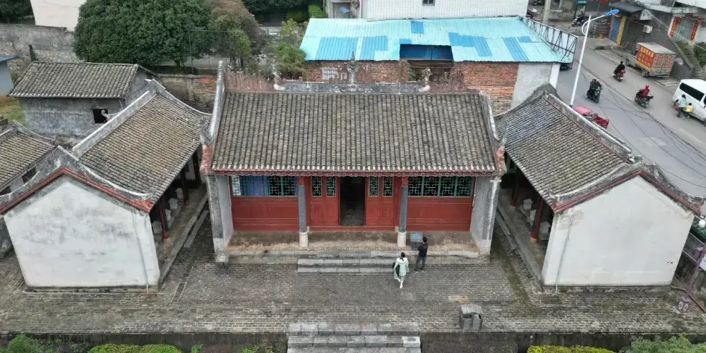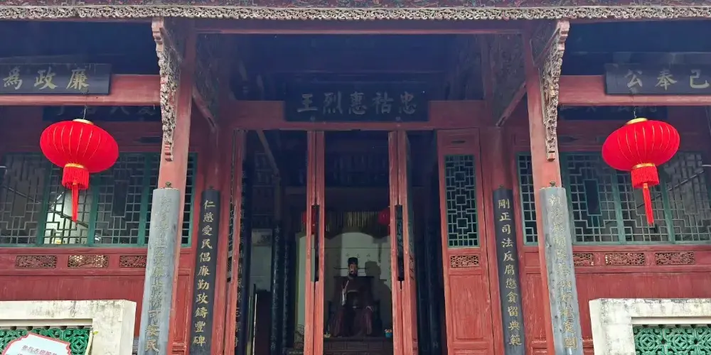 宋御史周渭,因其一生廉潔奉公,頗有政績,死後被朝廷敕封為"忠祜惠烈王"。家鄉百姓感恩德,捐款為他建廟、蠟塑像,現稱周王廟。位於恭城縣城東,建於明成化十四年(1478年),清雍正元年(1723年)重修,是祭祀宋御史周渭的祀廟。由戲台(已毀)、門樓、大殿堂、後殿(已毀)、左右廂房組成。門樓構造具有廣西特色:一是檐柱承下檐,金柱支到上檐,體形在中間驟然收小;二是斗拱主要起裝飾作用。周渭祀門樓的斗拱除有裝飾作用外還有奇特的功能,這種斗拱由座鬥、交互鬥、鴛鴦交手鬥三種形式組合成嚴謹而有規律的蜂窩狀,使氣流通過時產生迴流而發出轟鳴聲,令蝙蝠不敢稍歇,鳥雀恐為築巢,起到自然抵禦蟲鳥侵害的作用。這在古建築中是少有的。在梢間外圍牆壁挑檐上,全樓一千多根堅實木料互相串連吻合,合理承擔上層荷載,使屋面飛檐遠挑,雄偉壯觀,為清代建築所罕見。這些斗拱結構和木構架,是研究古建築的寶貴例證。