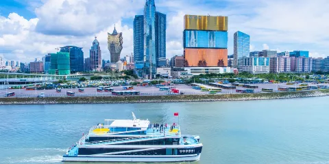 珠澳海灣夜遊從灣仔旅遊碼頭出發,有商務包間、茶座及聚會娛樂客艙、露天甲板綜合性能高端的遊船運營,航線途經國際會展中心、橫琴金融島、澳門三座跨海大橋、澳門葡京酒店、南海觀音、澳門國際機場、珠澳口岸人工島、港珠澳大橋等系列景點後返航。航線途中還安排精彩節目和各式精美糕點,全程約100分鐘。