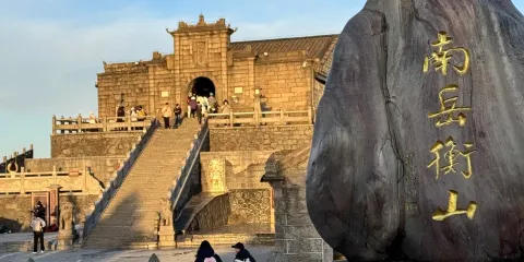 祝融峯是衡山高的山峰,海拔約1300公尺。祝融峯是根據火神祝融氏的名字命名的。相傳祝融氏是上古的火神,黃帝任命他為管火的火正官。黃帝又封他為司徒,主管南方事物。他住在衡山,死後又葬在衡山。從南天門步行到祝融峯,大約需要30分鐘。登上祝融峯頂,極目四望,腳下是連綿的山峰,還有鬱鬱蔥蔥的叢林,遠處是蜿蜒的湘江。祝融峯上有祝融殿(廟),因為山高風大,所以建築是用堅固的花崗岩砌牆,以鐵瓦蓋的頂,殿宇凌風傲雪,巍然屹立在絕頂巨石之上。殿後有望月台,是一塊高聳的巉岩,上面有石刻,字跡清晰可辨。現今許多遊客會到祝融殿燒香祈福,殿內販售的香燭不便宜,遊客可以自備。祝融峯以南不遠處就是上封寺。上封寺在隋代以前叫光天觀,是道教活動的地方。隋場帝大業年間(605-618年),下令改為上封寺。上封寺山後是“望日台”,在望日台旁邊,有一塊石碑,上面刻有“觀日出處”四個大字,在秋高氣爽,特別是雨後初晴的日子裡,遊人可以看到\"一輪紅日滾金球\"的奇景。為了看日出,遊客需要在前一天住在上封寺的招待所裡,隔天黎明前趕到望日台。
