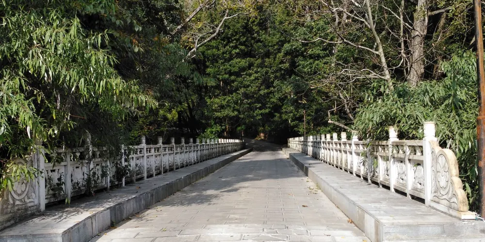 則評價位於雞足山南麓,有座一高兩矮牌樓式的建築,中坊上鑲有全國佛教協會主席趙樸初撰題“靈山一會坊”匾額,左右兩坊分別是“天開佛國”及“地湧化城”。此牌樓是雞足山的山門總坊,過了“靈山一會坊”,初登雲路,朝山就從這裏開始了。
