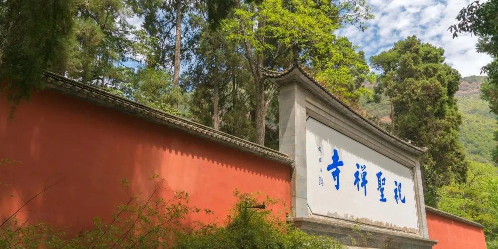 祝聖寺位於缽盂山下,距離“靈山一會坊”約2.5千米,它背靠九重巖,原名缽盂庵。清光緒年間名僧虛雲大師來山,在此建十方叢林祝聖寺,欽賜紫衣、金缽、玉望。寺內還收藏御踢鑾駕、紫衣缽孟、玉印、錫杖、玉龍杯、玉佛及名人字畫等珍貴文物。