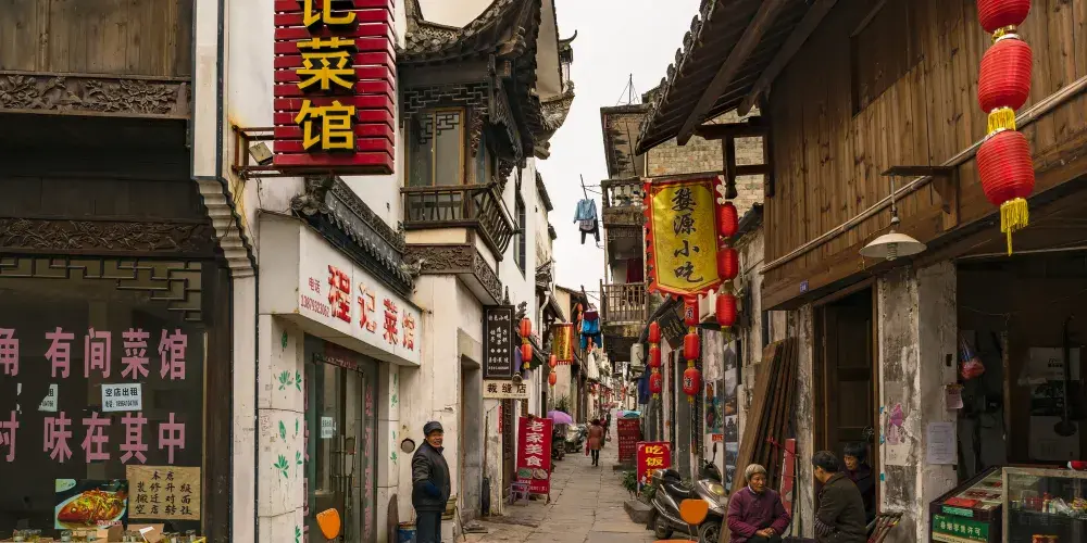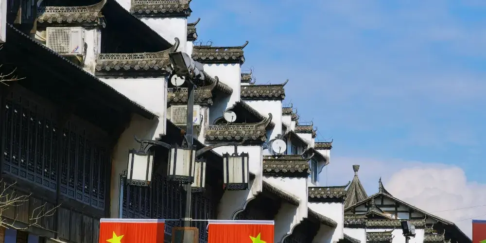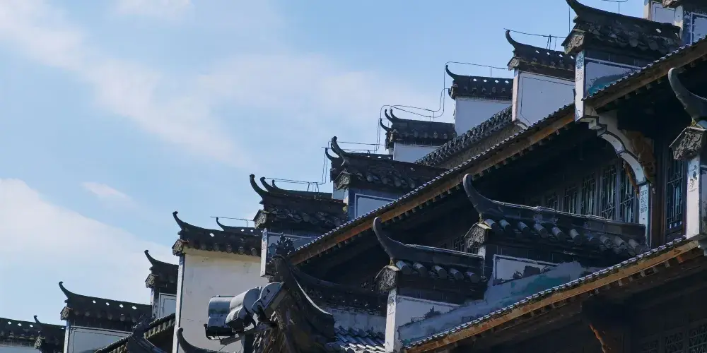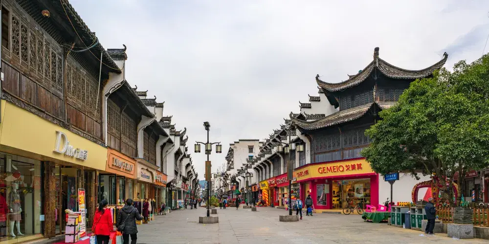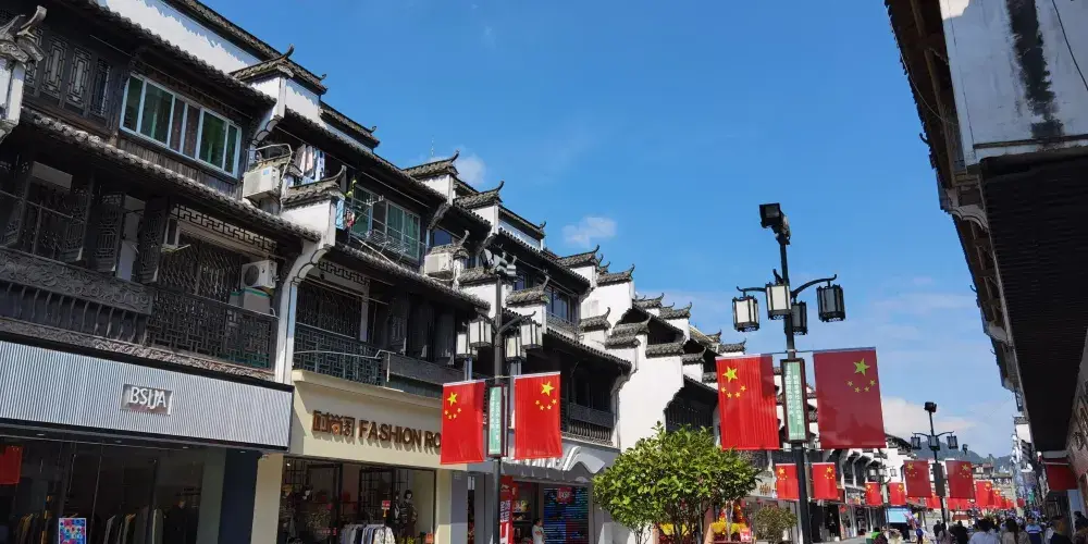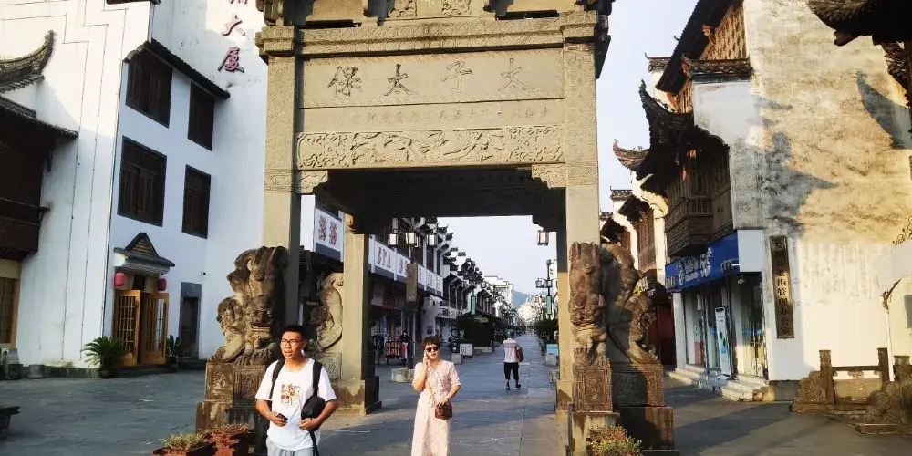 婺源朱子步行街是婺源縣城一條改造後的老街,以徽派建築為特色,店鋪林立,基本都是品牌專賣。仿古而建,木雕花窗,精細鏤空,白牆黛瓦,飛簷翹角,整齊劃一。初到婺源的人,走在步行街,鱗次櫛比喧鬧的商鋪不一定會讓人吸引,而仿古的徽派建築風格卻能讓人駐足,馬頭牆,青石板路,抑或花燈造型的街燈等等每一細微處都在訴說徽州文化的細膩與溫婉。