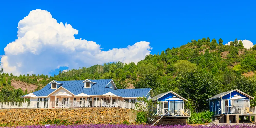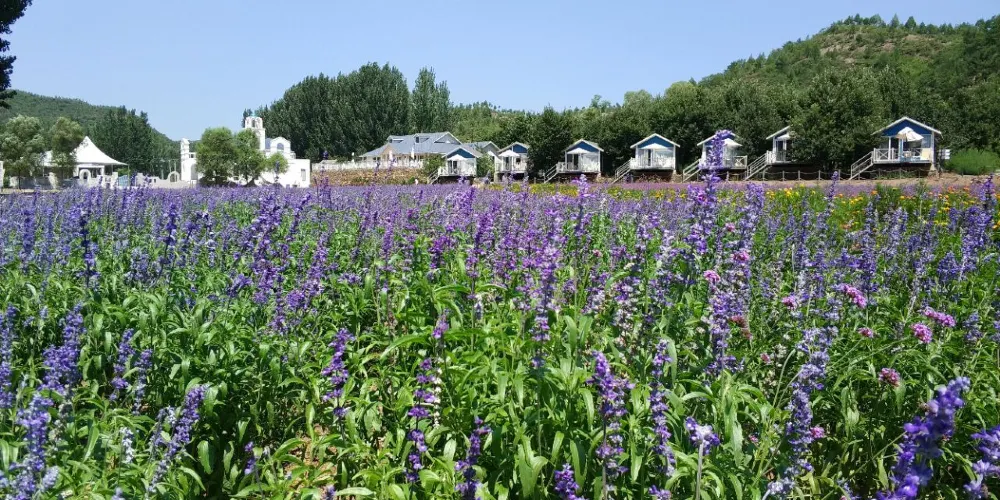 “紫海香堤”香草莊園,位於山間平地,擁有300畝的薰衣草田。另外,各式香草近200種,花期可達8個月,主要以四季薰衣草、馬鞭草、洋甘菊等香草為主。靜靜流淌的湯河加上茂密的金山林,構成一幅美麗的風景圖畫。花開時節,芳香沁人。園區非常大的特色是12個愛情主題景觀:愛之牆、星座愛情柱、香泉許願池、奇蹟之鐘、真愛大作戰、香海小木屋、蜜宮、愛神鵰塑、愛情十八彎、老桑樹回憶、愛情巖等。在這裏,儘可以體驗愛情的甜蜜。香草藝術園開發有多種香草時尚產品,如根據普羅旺斯的古法手工製作的乾花、香包、香袋、精油、香水、香皂、蠟燭、花環、花籃等等,使您不但能夠在這裏感受到迷人的風景、浪漫的情調,更能為這份珍貴的回憶留下一份獨特的紀念品。