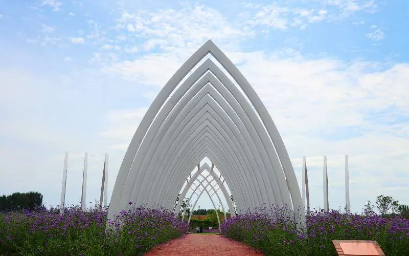 紫雲水岸香草園位於天津薊縣於橋水庫北岸,高大氣派的乳白色大柱撐起門樓入口,內半圓的取勢恰似雙手歡迎八方遊客,上面正中“紫雲水岸香草園”幾個金色大字。大巨各莊紫雲水岸生態公園的玉段橋,猶如白玉雕刻的長龍臥於水面之上。大巨各莊紫雲水岸生態公園內的竹閣觀景亭,用竹子材質建造的亭閣,綠色環保。大巨各莊紫雲水岸生態公園裡荷花眾多,美麗極了。