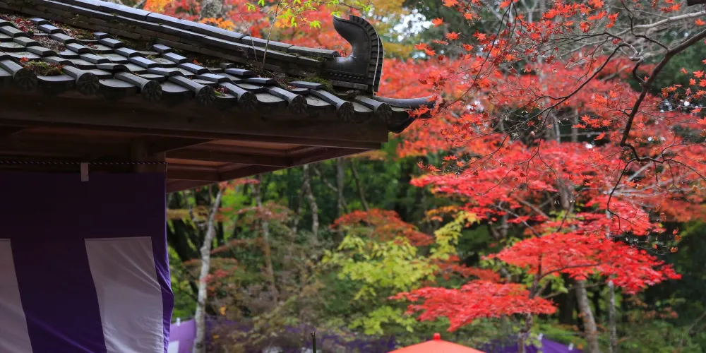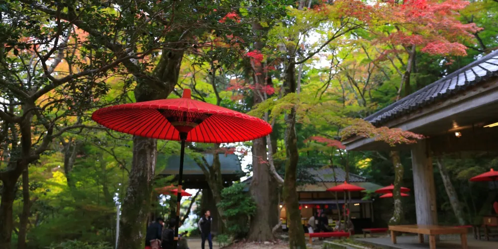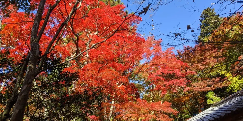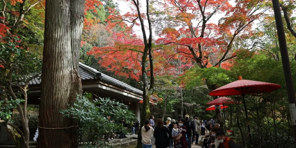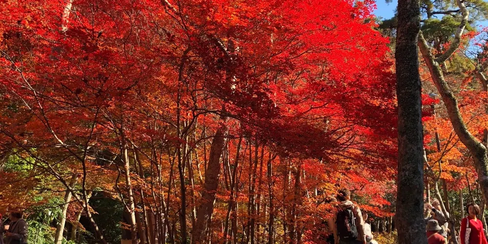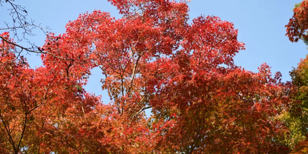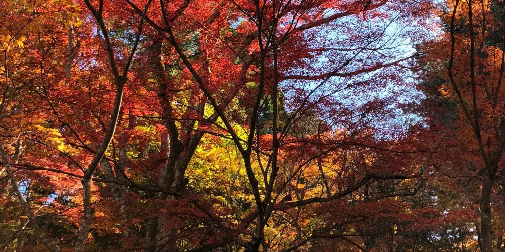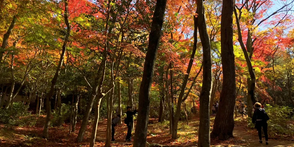 瑞寶寺公園在三大知名温泉之一的有馬温泉附近,是觀賞楓葉的名勝。公園裡種植了約3000棵的楓樹。秋天的時候,放眼望去一片紅彤彤,像燃燒着的大火,杜牧的詩中寫道“霜葉紅於二月花”用在這裏極為妥帖。雖都是楓葉,近看卻各不相同,顏色十分斑斕,有大紅色的、深紅色的、橙色的、深黃色的。它們錯落有致地鋪展在山野間,構成了絢麗多姿的奇瑰景色.