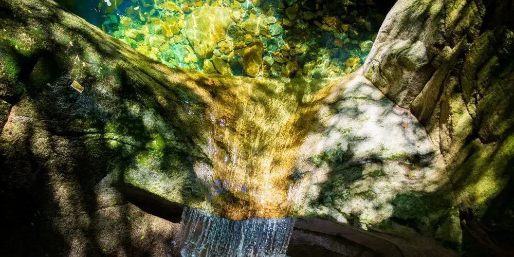 地洞有形態各異的巨石、淙淙不絕的地下河,9米多高的巨型鍾乳“落地金鐘”宏偉壯觀;中洞遍佈精美的鐘乳石羣,若物若人,維妙維肖;天洞宏大綺麗,曲折幽深,景觀奇異。洞中石壁上有明代以來的題詠石刻多處。洞內景觀奇特,洞外山清水秀,內外景緻交融,確實令人陶醉。
