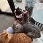 簡直是小貓咖 還有一衹杜賓犬 床位乾淨還有小桌板可以放東西 老闆會出來幫忙拿行李 店員小魚特別貼心細心很能嘮嗑性格活潑 門口就是小河能聽到水流聲 推薦~