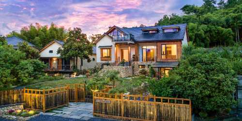 阿忠的家是安吉的白金宿,多家電視台以及媒體都爭相報道過。老闆更是被評為2019湖州十佳民宿業主。民宿採用美式別墅風格,佇立在茶山邊,背靠竹林,被荷花塘,四季花園,以及整齊的草坪包圍着,安靜温柔,猶如童話世界的小木屋。