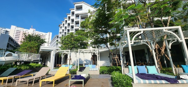與好友旅遊 高級游泳池景特大床房(帶陽台)