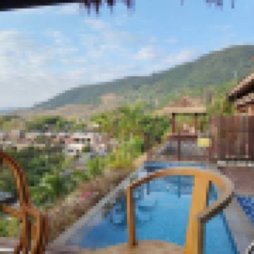 情侶 蜜月單卧泳池別墅(觀景露台+私家泳池+洗衣機+冰箱)