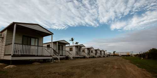 In an older demountable cabin which needs some tlc. Bed a bit short for me