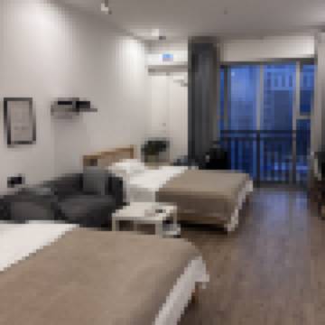 與好友旅遊 Ins風投影雙床房【全景落地窗+辦公桌+街景】