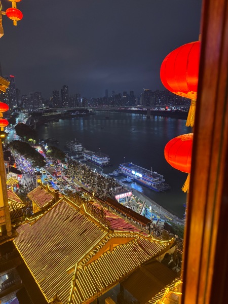 封閉式雲端浴缸大床房【俯瞰嘉陵江 + 魁星樓夜景】