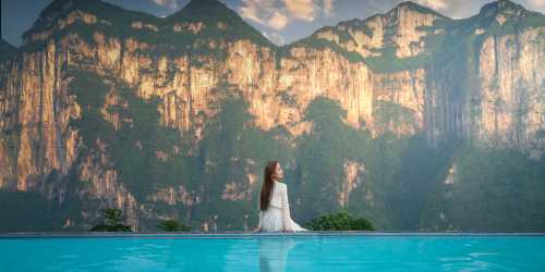 和爸爸媽媽一起來玩,剛好在淡季,店家服務特別周到,考慮到我們三個大人,是讓我們住的雙床房,還比較寬敞。泳池就在樓底下,和媽媽一起去遊了泳,自帶泳帽浮板等,酒店有免費提供泳圈。這裏炒菜味道還不錯,米飯免費這一點好評!送了早餐,解決了這三天早餐的吃飯問題。從酒店窗戶能看到泳池和山峯峭壁,環境很美。