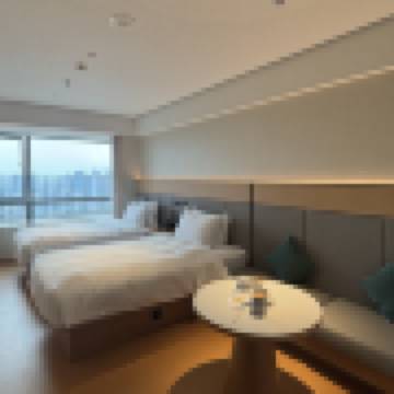 獨自旅遊 商務雙床房(俯瞰全城+全景飄窗+65寸投屏電視)