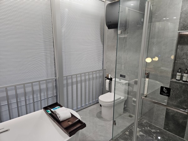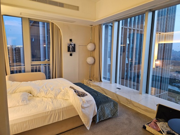 酒店擁有頗具人文藝術的空間立體大堂和裝飾風格各異的奢裝客房,帶你領略不同國家和地域的裝飾風情,房間均配備超大屏投影、如夢雲端的超輕柔床上用品、呵護您每一寸肌膚的EPIQUAL全套高端洗護用品、智慧客控系統以及百兆無線網絡。配套自助早餐廳(5座2F),自助免費洗衣房(5座1F),是你商務公幹,休閒旅居,家庭親子,團建轟趴及獨處休憩的上乘優選!