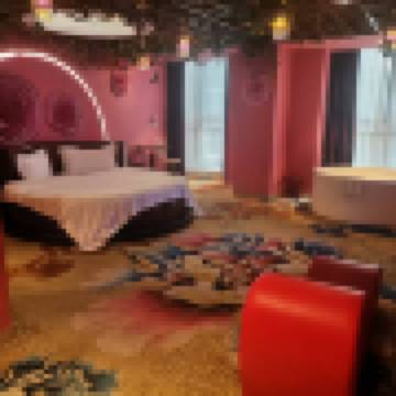 泡泡浴+浪漫多功能圓床+情侶氛圍浴缸+功能椅+沙發