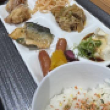 位置在富士市中心,酒店附設免費三個停車場,酒店對面有便利店,早餐算多款式!