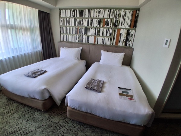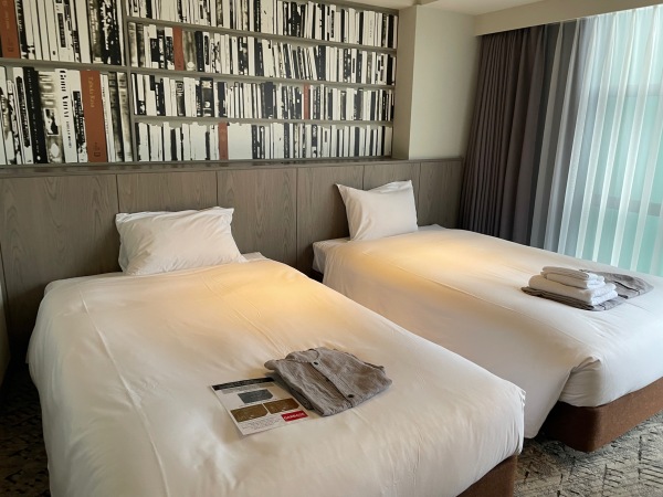 Beautiful concierge area like a library. The theme is intellectual world with their own playlist. Room size is ok for twin beds. Wish there were more tooth brushes in the room though the bath salts are good. Wish the room can improve on the scent. Overall, comfy beds.