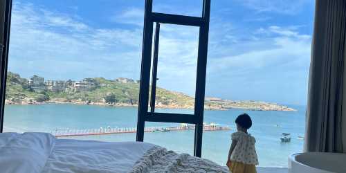海天之城民宿真的絕了 躺在床上就能看日出 超大落地窗正對猴研島 下樓就是私人沙灘 房間乾淨到發光 投影儀+乾濕分離衞生間 泡在浴缸裏看日落浪漫哭了 管家服務超貼心 免費下午茶好吃又好拍 步行10分鐘到68海里景區 位置真的太方便了