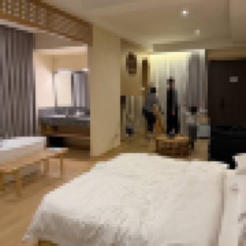 酒店的格調是歐式裝修,空間大房間的設施很新,浴缸也是很大還能看風景!蜜月的朋友們很推薦! 這裏很安靜,空調夠力夏天也不怕,附近也有幾家吃飯的店很方便! 房間用的投影非常的清晰,不是看不清臉那種 客服態度好回覆很快哦!性價比很高滿意!! 還有超級可愛的小狗店長阿樂!情緒價值滿滿