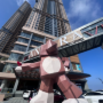 震撼到。 抬頭一看整棟建築直衝天空,搭配藍天白雲,整個畫面很有國際都市的感覺✨ 門口最吸睛的,就是這隻超巨大幾何熊🐻 不是一般可愛那種,是帶點潮流設計感,小朋友看到直接衝過去拍照,大人也忍不住多拍幾張📸 可以說是「還沒入住就先打卡成功」的地方。 走進大廳,整體氛圍偏現代輕奢風, 挑高設計讓空間很舒服,不會有壓迫感,冷氣也夠涼,從外面熱到爆,一進來瞬間放鬆😌 ⸻ 🏠 入住後的真實感受 房間整體乾淨度OK,採光很好,白天不用開燈都很亮☀️ 高樓層的優勢真的很明顯, 👉 白天可以看到整個城市景觀 👉 晚上直接變成夜景模式,氛圍直接拉滿🌃 床的舒適度不錯,對於帶小朋友的家庭來說也很友善, 空間足夠,小孩活動不會太侷限。 ⸻ 🍽️ 生活機能 & 周邊 這裡最大優點之一就是「方便」👇 ✔️ 樓下就有餐廳、咖啡廳 ✔️ 想吃東西不用特地開車 ✔️ 日常生活需求幾乎都能滿足 對於像我們這種親子自由行來說,真的加分很多💯 不用一直移動,小朋友也不會累。